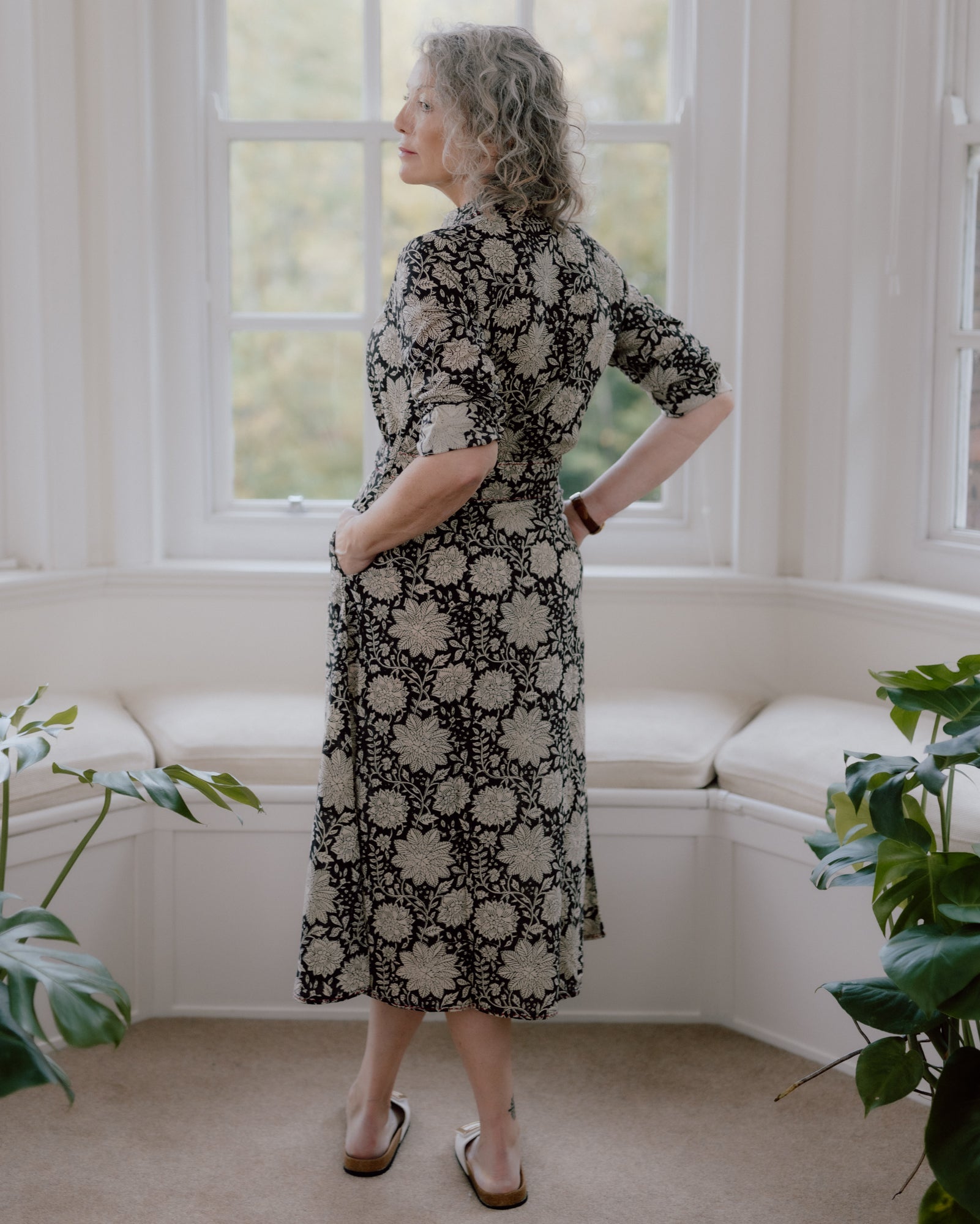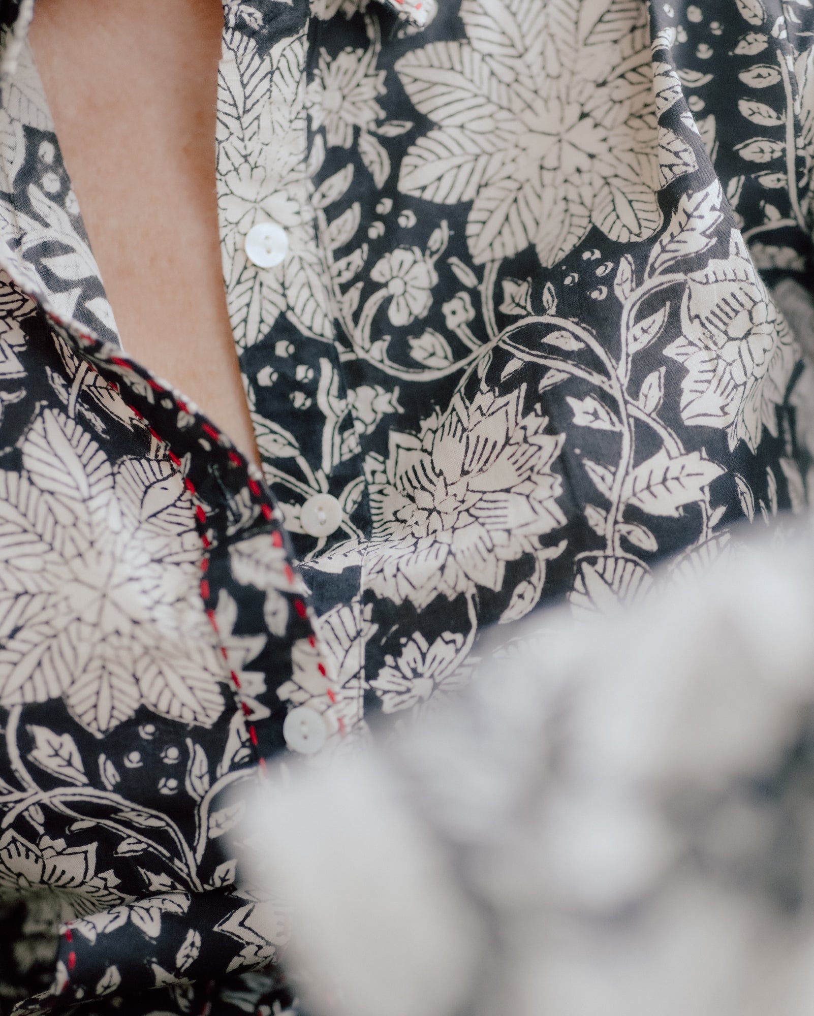 Hand-block-printed, hand-dyed, and hand-sewn by artisans in India, this singular piece embodies centuries of craft translated through a contemporary lens. Created from organic cotton and coloured with azo-free vegetable dyes, every element speaks to a sustainable future - one where fashion uplifts rather than extracts.