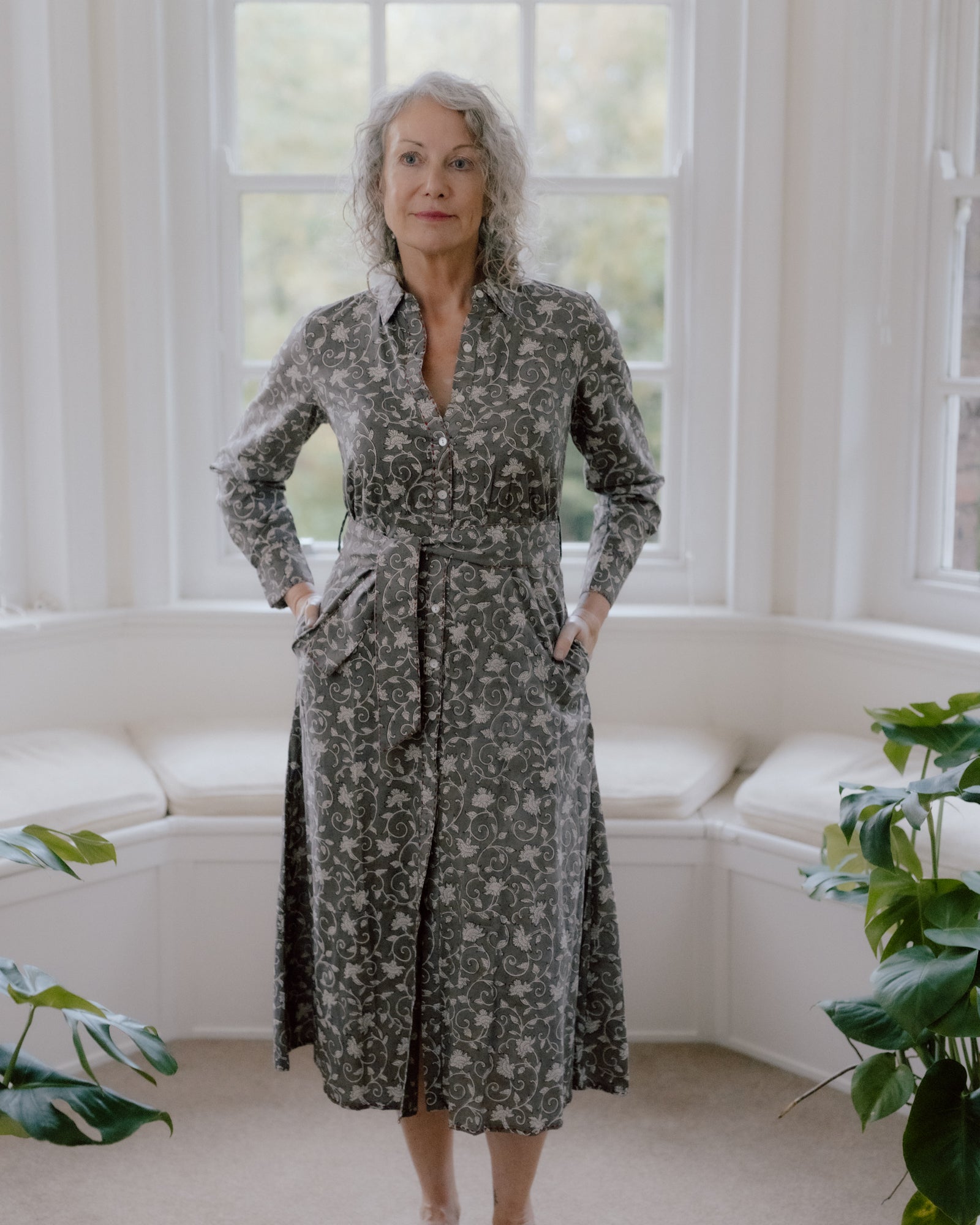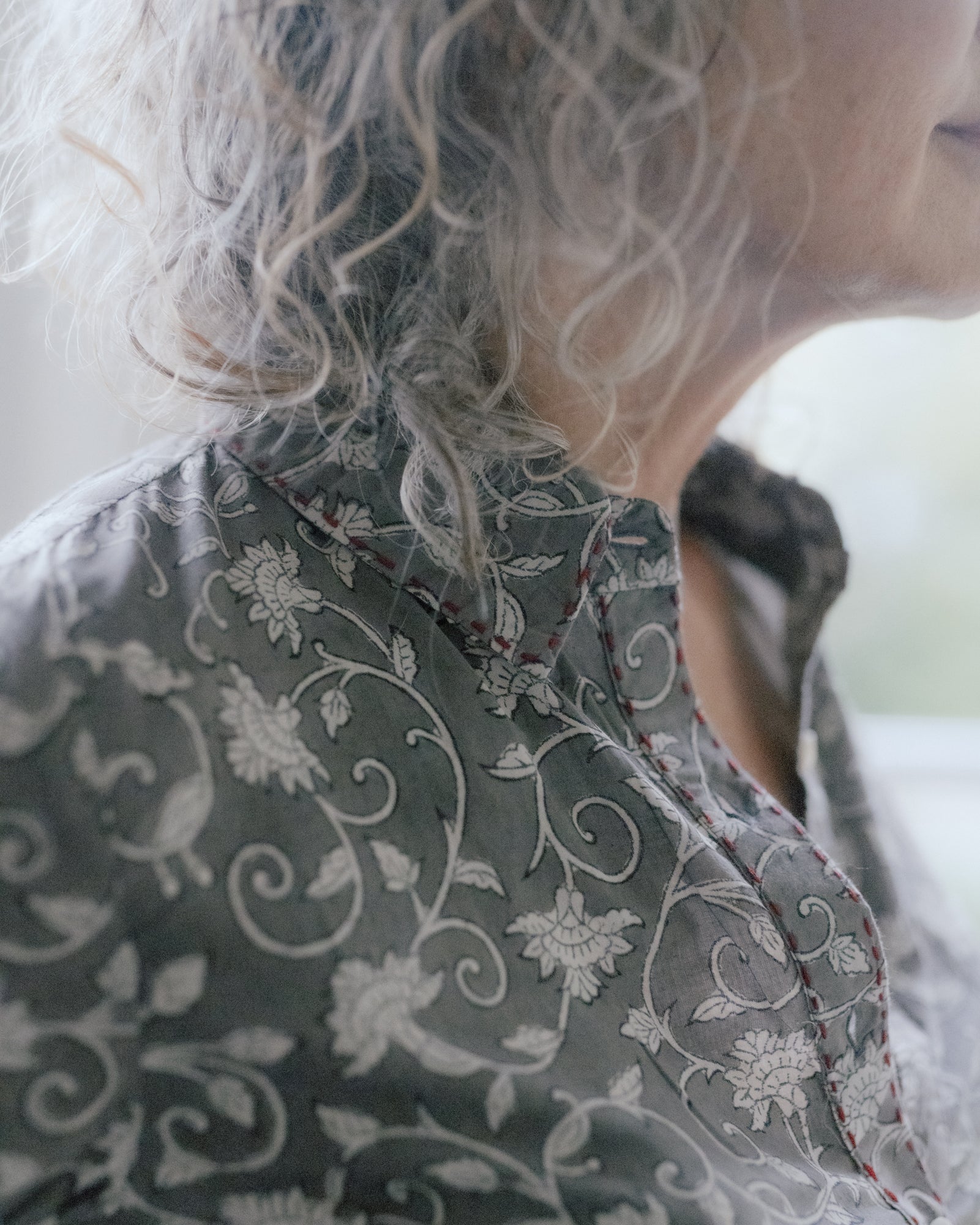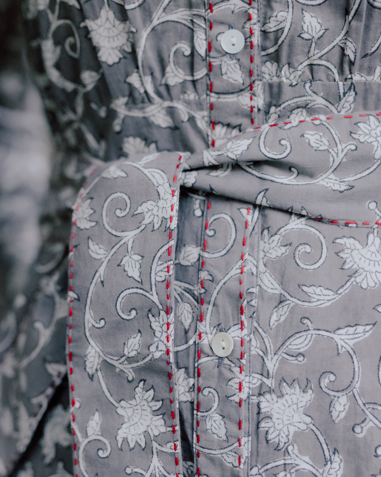 Hand-block-printed, hand-dyed, and hand-sewn by artisans in India, this singular piece embodies centuries of craft translated through a contemporary lens. Created from organic cotton and coloured with azo-free vegetable dyes, every element speaks to a sustainable future - one where fashion uplifts rather than extracts.